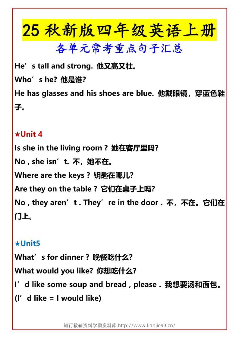 【2025秋新版】四年级英语上册各单元常考重点句子汇总学科网1个月前发布关注私信0435【2025秋新版】四年级英语上册各单元常考重点句子汇总此内容为付费资源,请付费后查看¥9.6黄金会员免费钻石会员免费暂时无法购买,请与站长联系您当前未登录!建议登陆后购买,可保存购买订单格式pdf页数5 页大小95.95 KB付费资源 ——预览已结束,还剩3页未读——开通会员后可免费下载高清完整文档 © 版权声明文章版权归作者所有,未经允许请勿转载。THE END小学资料 喜欢就支持一下吧点赞5 分享QQ空间微博QQ好友海报分享复制链接收藏