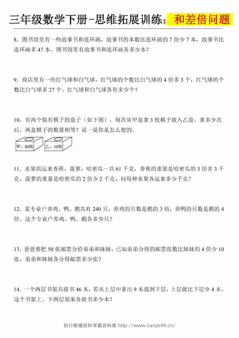 三年级下数学思维拓展训练-和差倍问题学科网昨天发布关注私信04715三年级下数学思维拓展训练-和差倍问题此内容为付费资源,请付费后查看¥9.6黄金会员免费钻石会员免费暂时无法购买,请与站长联系您当前未登录!建议登陆后购买,可保存购买订单格式pdf页数15 页大小495.55 KB付费资源 ——预览已结束,还剩13页未读——开通会员后可免费下载高清完整文档 © 版权声明文章版权归作者所有,未经允许请勿转载。THE END小学资料 喜欢就支持一下吧点赞15 分享QQ空间微博QQ好友海报分享复制链接收藏